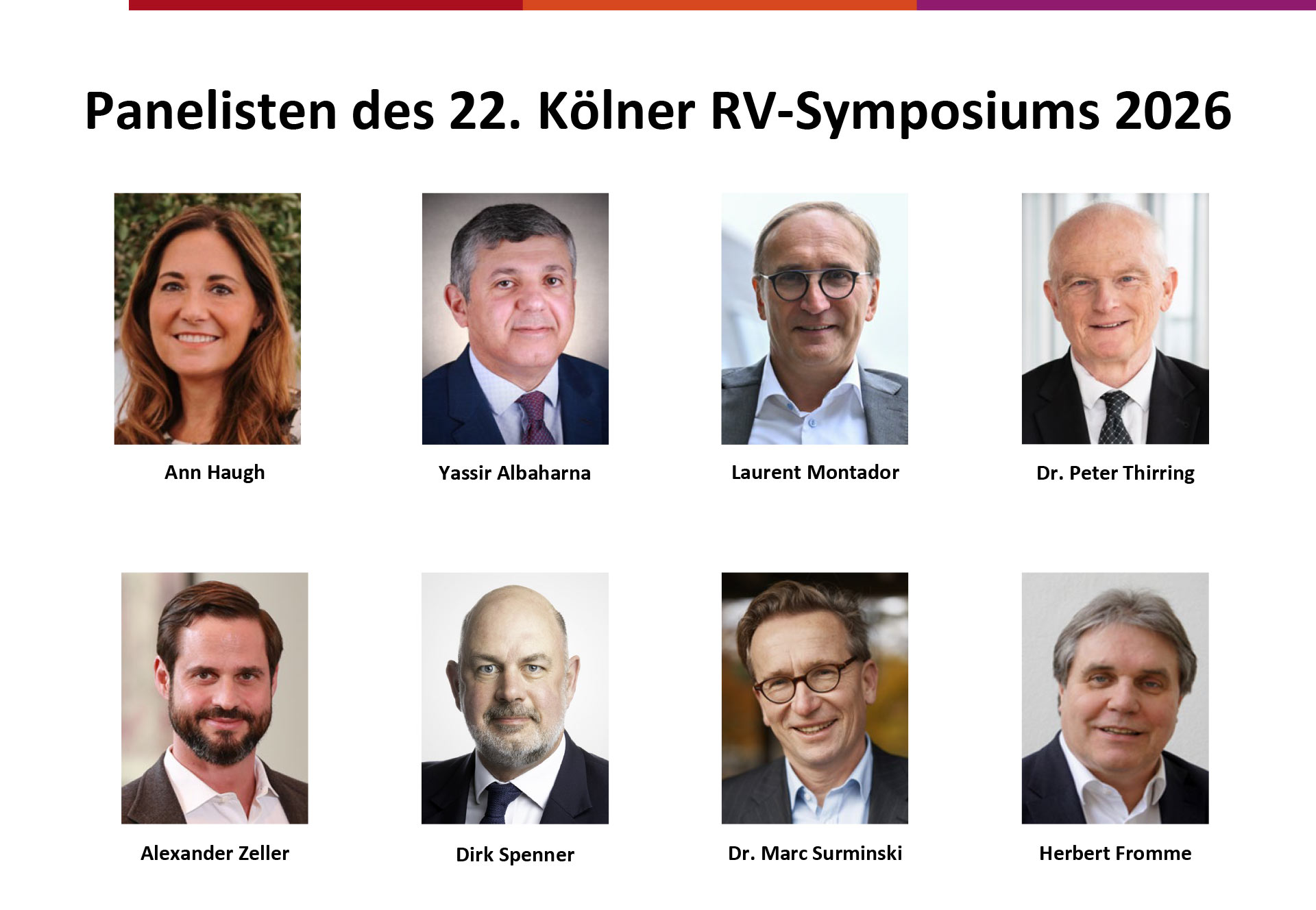 Das 22. Kölner Rückversicherungs-Symposium findet am Mittwoch, 17. Juni 2026, um 14 Uhr in der Aula der Technischen Hochschule Köln (Mainzer Str. 5, 50678 Köln) statt. Wie in den Vorjahren erwarten wir ca. 500 Teilnehmer. Die Teilnahme ist wie immer kostenfrei.